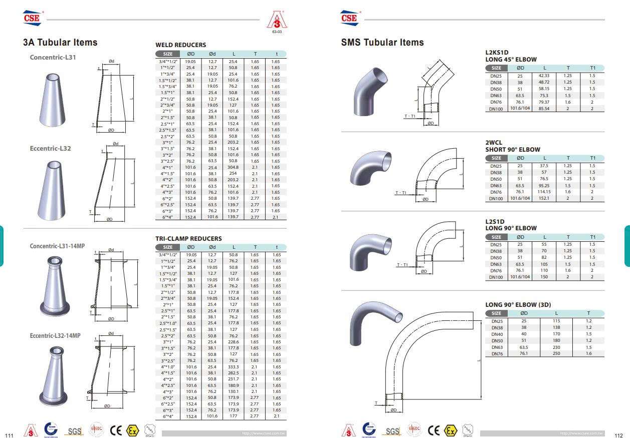 Tiêu chuẩn: SMS, DIN,ASME,BPE,DS,BS4825,AS,ISO