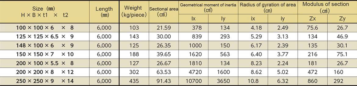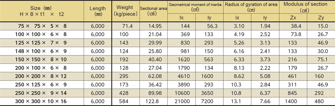Ví dụ về các kích thước phổ biến: H100x100, H150x150, H200x200, H300x300,...
