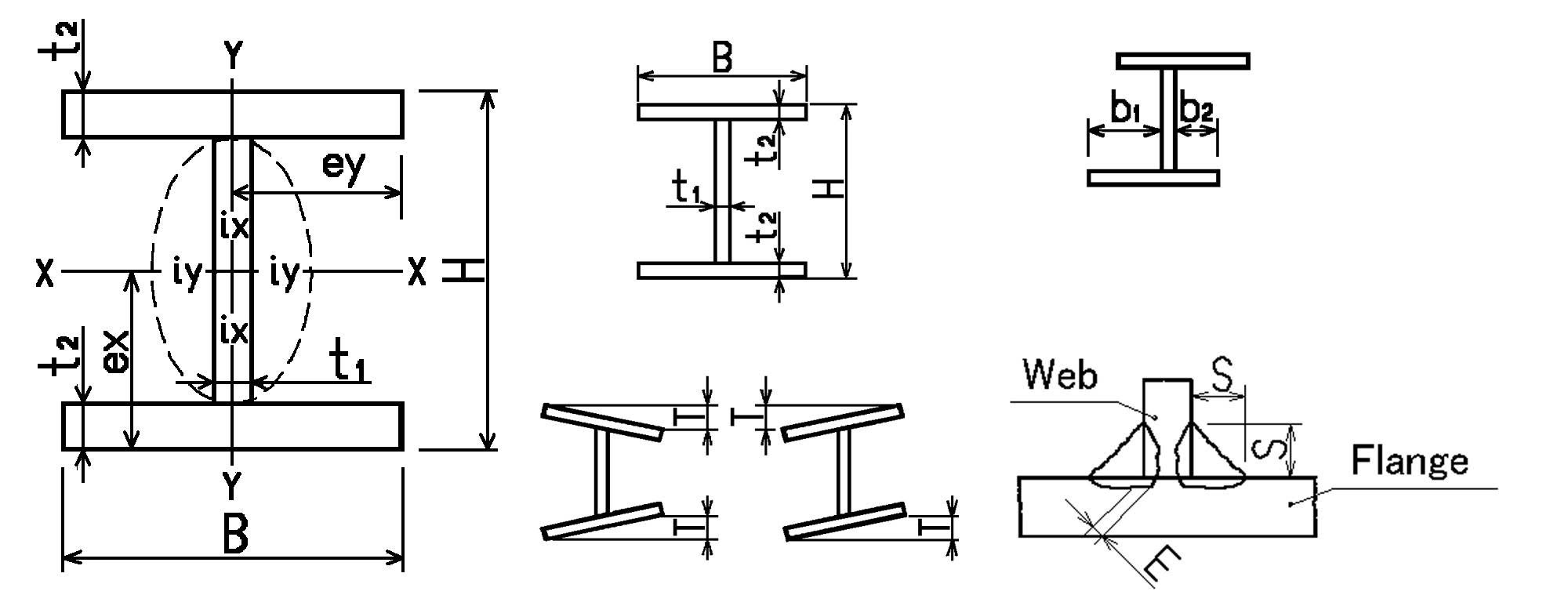 Inox Hình H được xác định bởi các kích thước: H x B x t1 x t2